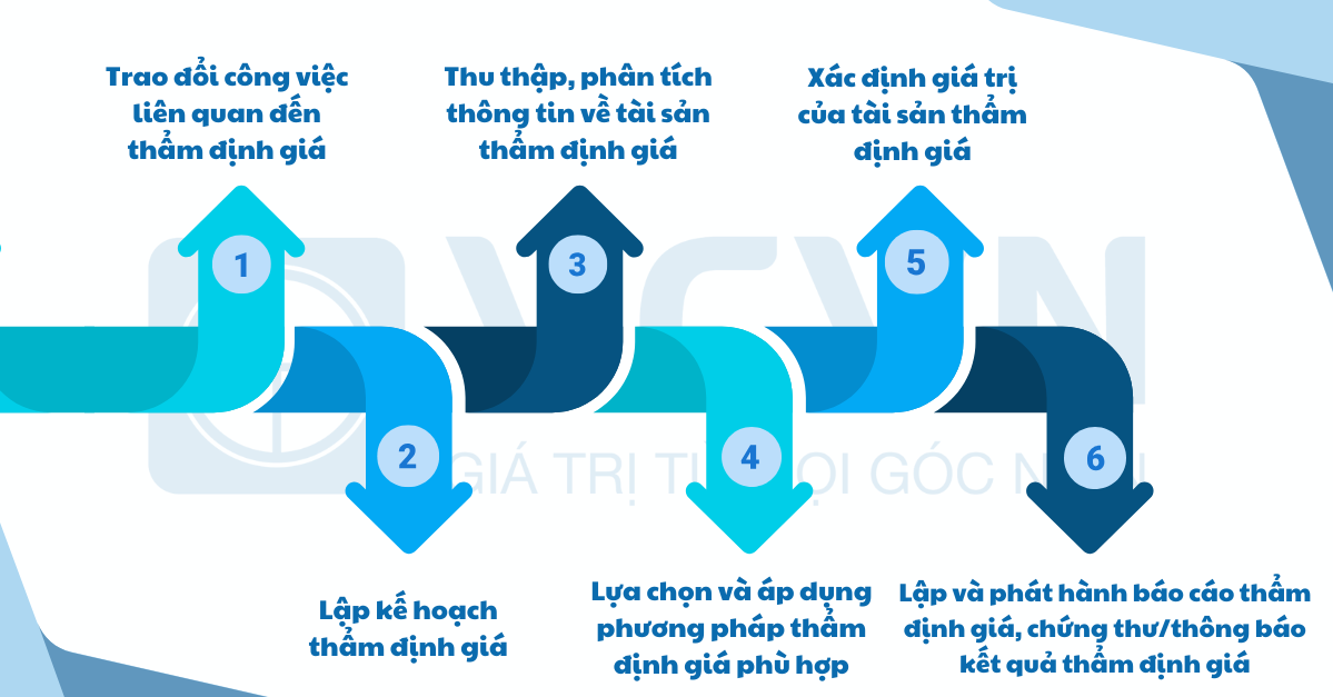 - Căn cứ đặc điểm tài sản thẩm định giá và thông tin thu thập được, tiến hành lựa chọn và áp dụng phương pháp thẩm định giá phù hợp theo quy định tại Chuẩn mực thẩm định giá Việt Nam.